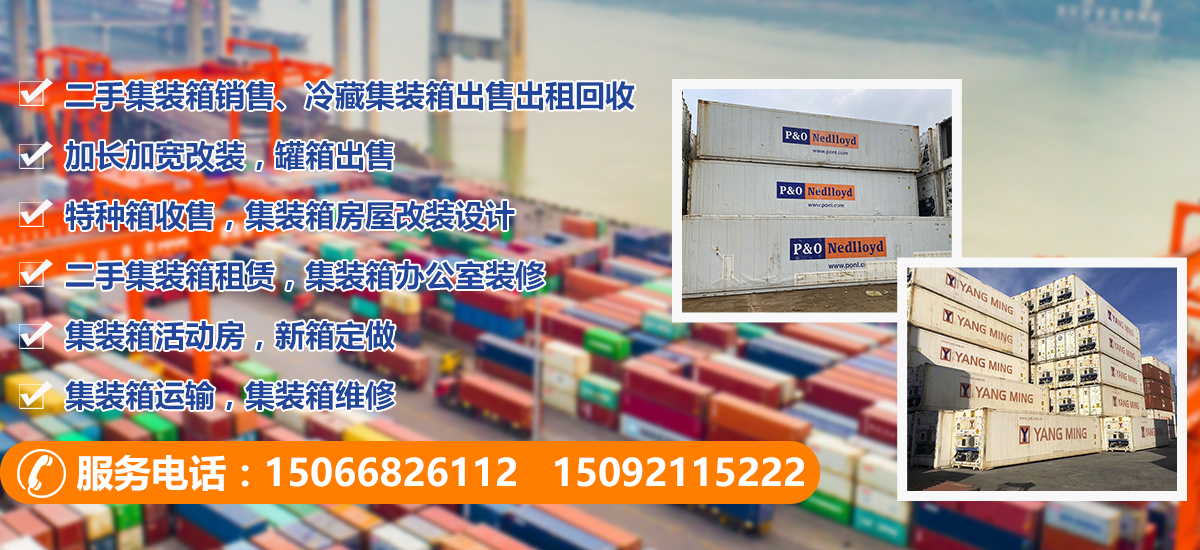 主營(yíng);二手集裝箱銷售、冷藏集裝箱出售出租回收、加長(zhǎng)加寬改裝,罐箱出售,特種箱收售,集裝箱房屋改裝設(shè)計(jì),二手集裝箱租賃,集裝箱辦公室裝修,集裝箱活動(dòng)房,新箱定做,集裝箱運(yùn)輸,集裝箱維修等業(yè)務(wù)